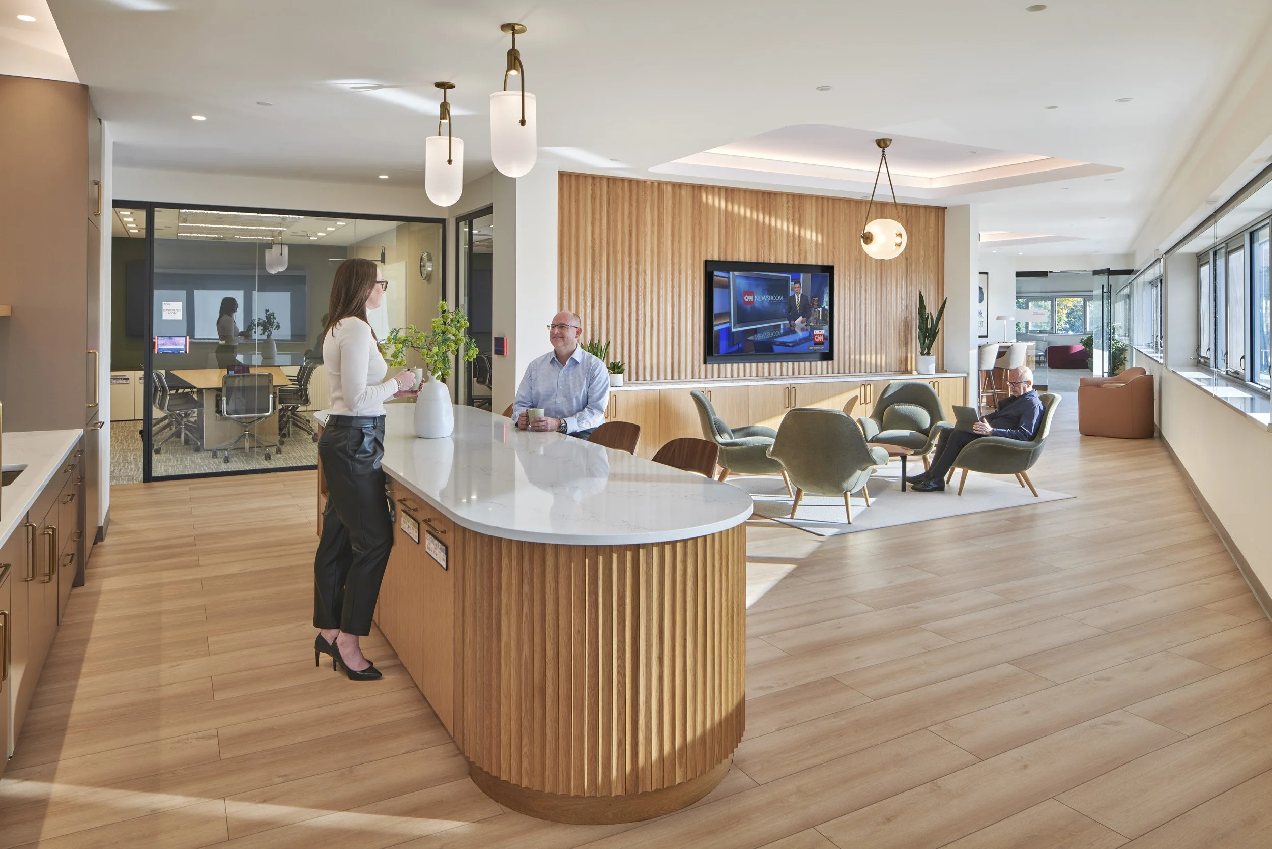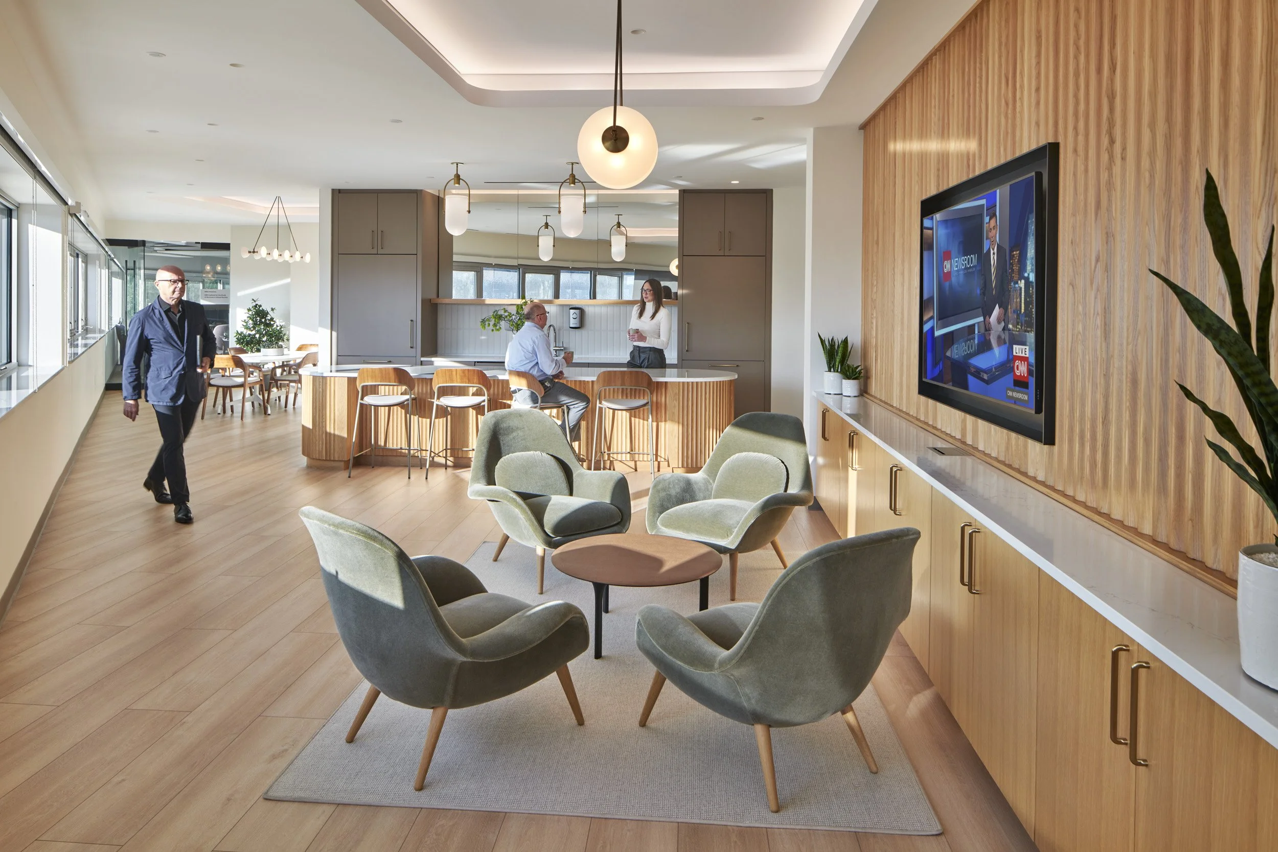 The co-working suites share a Conference Center composed of several different sized meeting rooms that can be scheduled. Each of the meeting rooms contains a full complement of zoom video conference and video display capability. There are two refreshments centers within the Co-Working Office that provide an array of beverages and snacks as well as seating and tables for informal meetings or individual focused work.