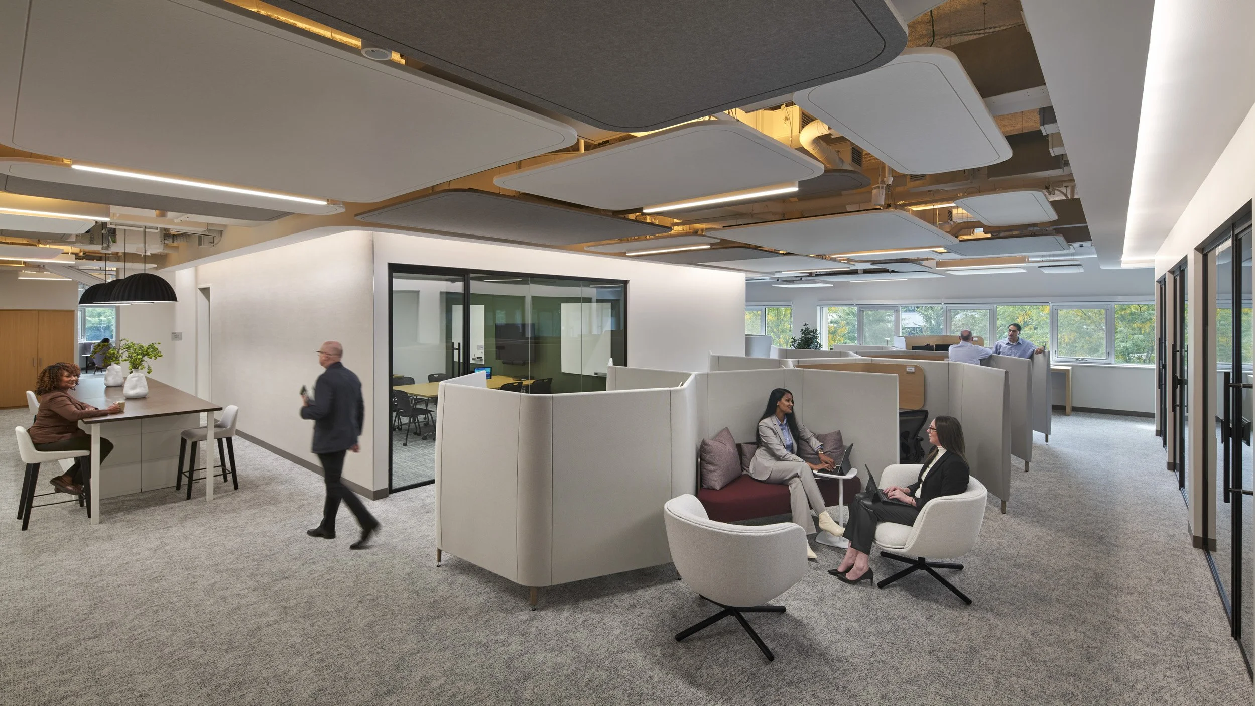 The workspaces can be scheduled using a mobile app that shows the floor plan of the facility and which spaces are available. Users of the new center can see who has booked the spaces in case there is a desire to work near someone for collaboration.